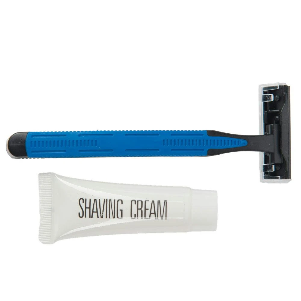 Das Rasier-Set besteht aus einem Einwegrasierer mit drei Klingen sowie einer Tube Rasiercreme. Rasierer und Creme befinden sich in einer hygienischen, klassisch weißen Einzelverpackung. Ebenso besteht die Möglichkeit, das Rasier-Set nicht einzeln verpackt, sondern in Verkaufs-Trays zu erwerben.Einsatzbereich für Hotel, Wellness