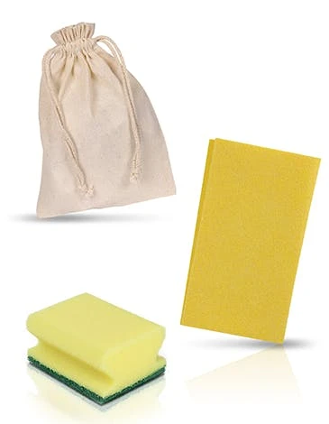 Inhalt: Die Bestellung umfasst 30 Reinigungssets. Jede Packung enthält: 1 gelben Putzlappen, 1 gelben Putzschwamm, 1 Baumwolltuch, 1 Flasche Geschirrspüler 30ml & 1 Mülltüte.