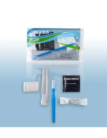 Bestehend aus Handseife 10g, Kamm, Zahnbürste, Zahnpasta im Sachet, Eau de Cologne.