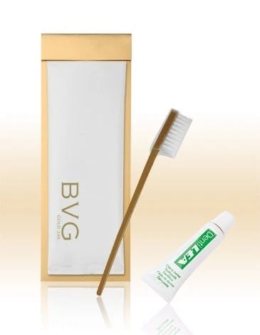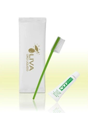 Zahnpflegeset 2-Teilig mit Tube, bestehend aus Zahnbürste und Zahnpasta in der Tube.